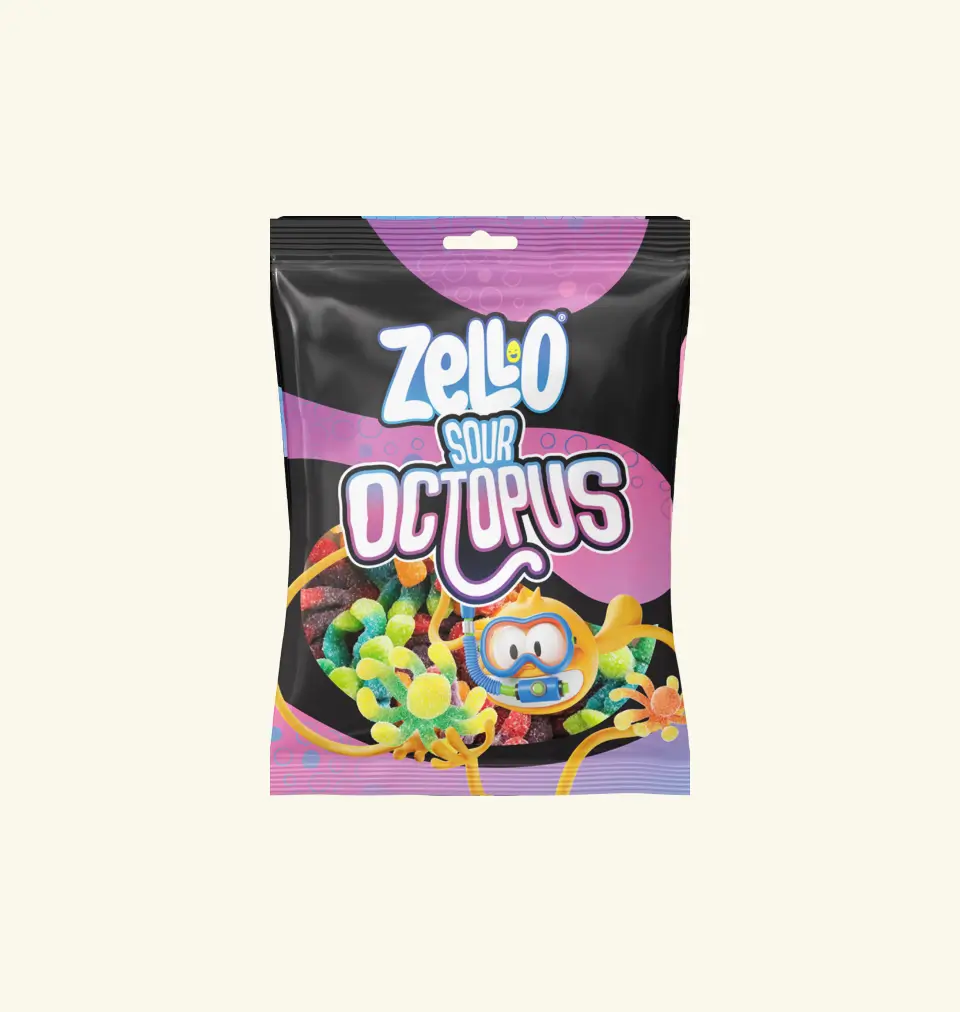 Savor the surprising combination of sweetness and fruitiness in Zello Oily Octopus Gummies and dive into the wiggly, fruity flavor adventure.