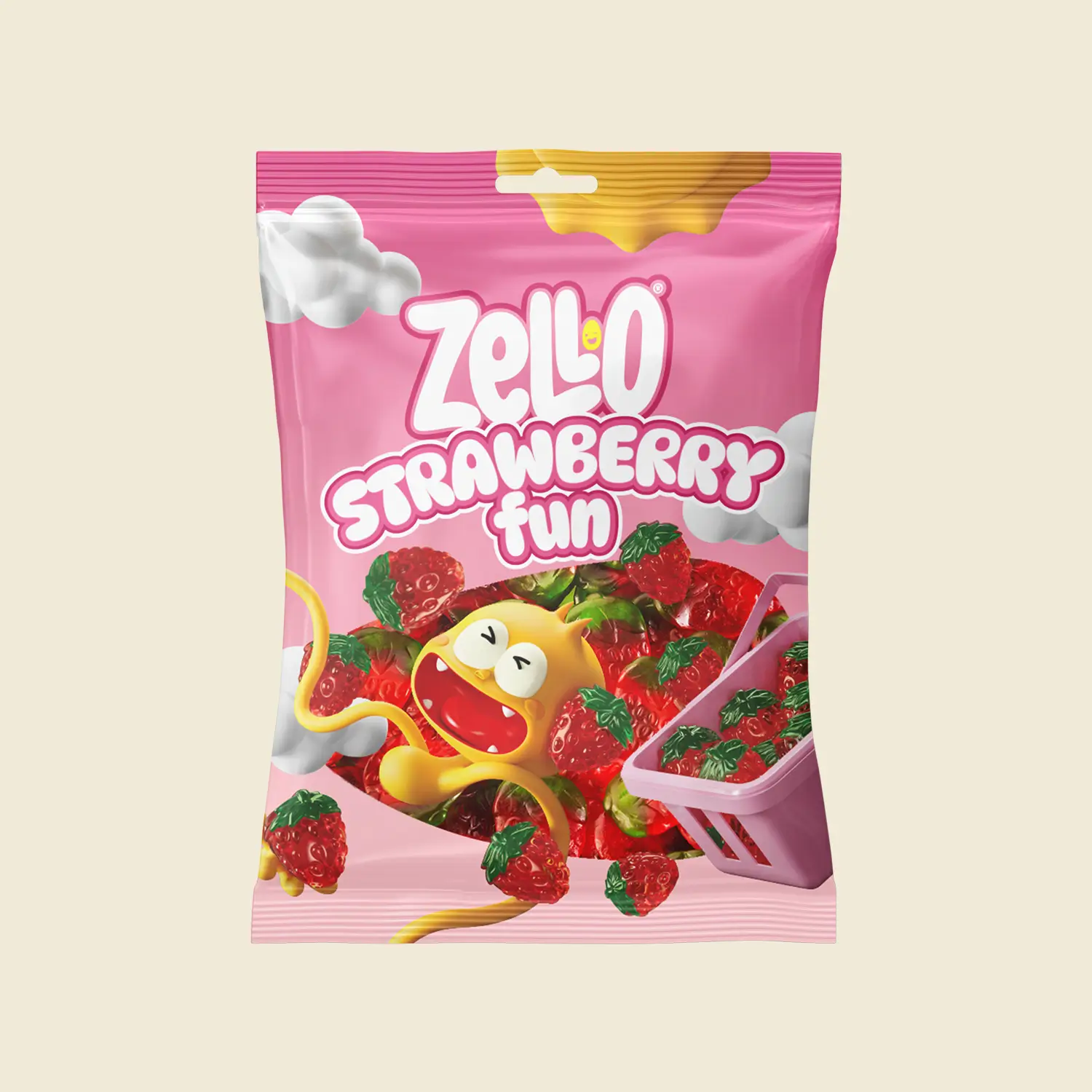 Strawberry gummies in a convenient bag – soft and flavorful.