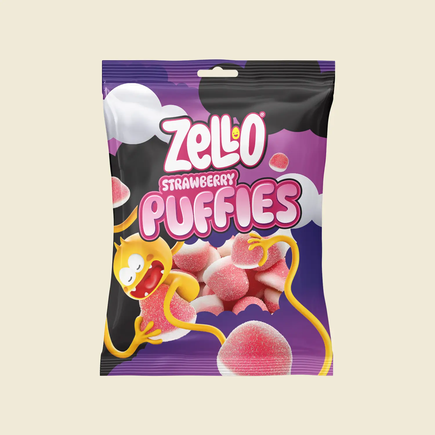 Small dome-shaped strawberry gummies in a quick snack sachet.